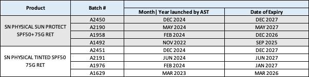 In response to widely reported concerns regarding manufacturing and testing of SPF products, to ensure safety and transparency, Advanced Skin Technology commissioned additional independent verification of its Aspect Physical SPF50+ sunscreens. Independent testing was conducted by an accredited Australian laboratory using recognised SPF methods. Advanced Skin Technology also obtained additional testing results from a separate US based laboratory for comparison. While some variability between methods (dry and wet) and panels is typical, the findings from both laboratories were consistent with our preliminary results: outcomes ranged from the low-20s to single digits (as low as SPF 4), all below the SPF 50+ printed on the product. On September 25th 2025, after receiving preliminary results, we moved quickly to initiate a voluntary recall of the two products.